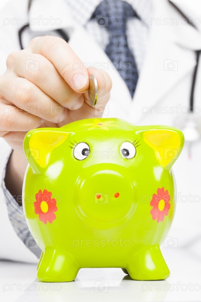 Докторложит монетку в копилку, идея для медицинского страхования и сбережений для медицинских расходов