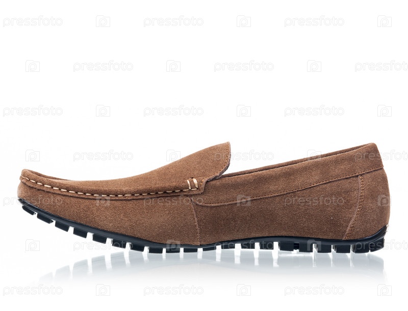 Коричневый мужской лофер на белом фоне