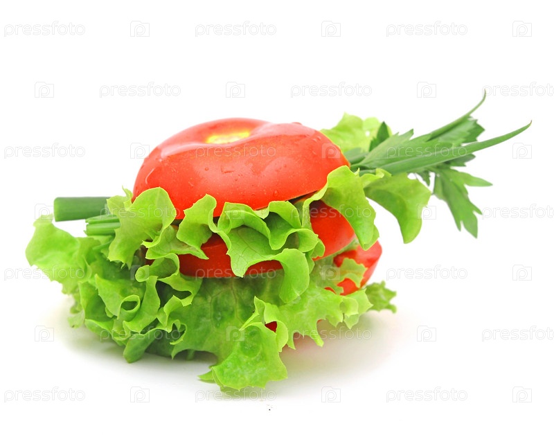 Томат и салат, изолированные на белом фоне