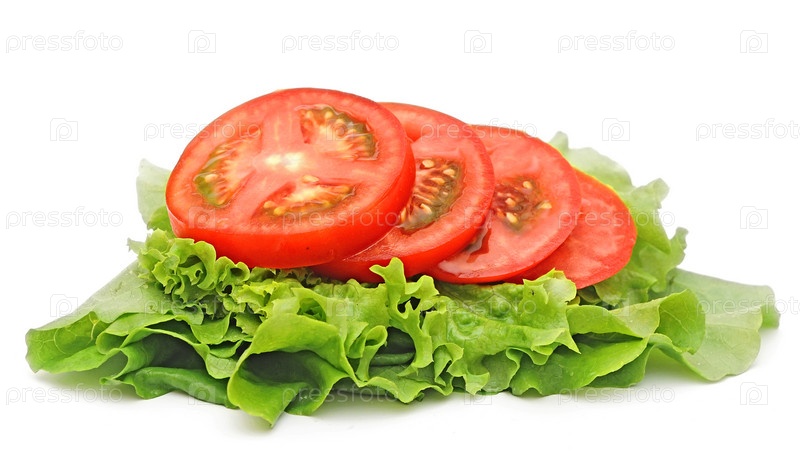 Томат и салат, изолированные на белом фоне