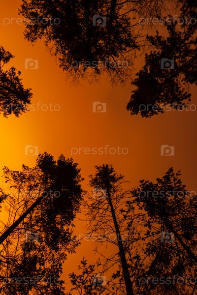 Ночной лес с силуэтами деревьев