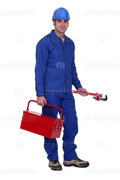 Рабочий с гаечным ключом и инструментами