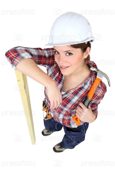 Женщина-плотник с молотка