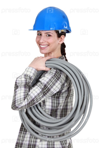 Работница с гофрированными трубами