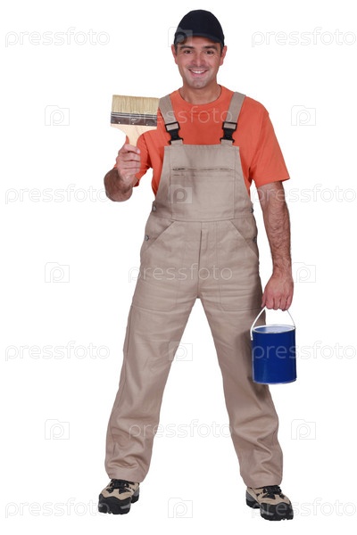 Счастливый маляр с кистью и краской