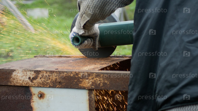 Человек с циркулярной пилой для обработки металла