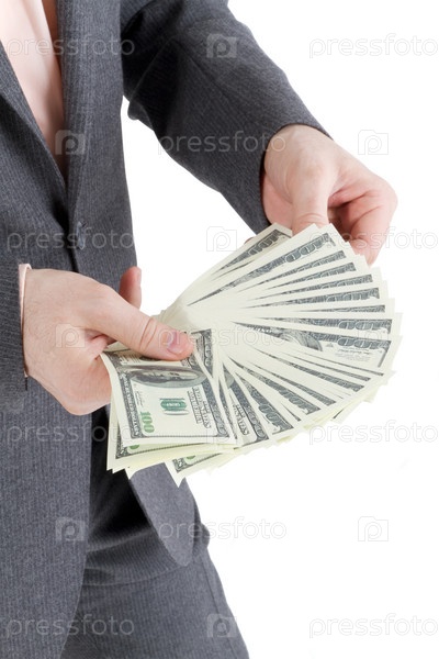 Банкноты номиналом 100 долларов в мужских руках