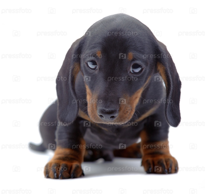 Щенок таксы на белом фоне
