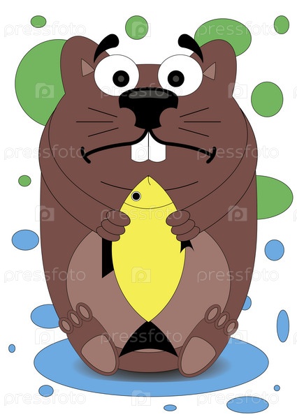 Бобер держит в лапах золотую рыбку
