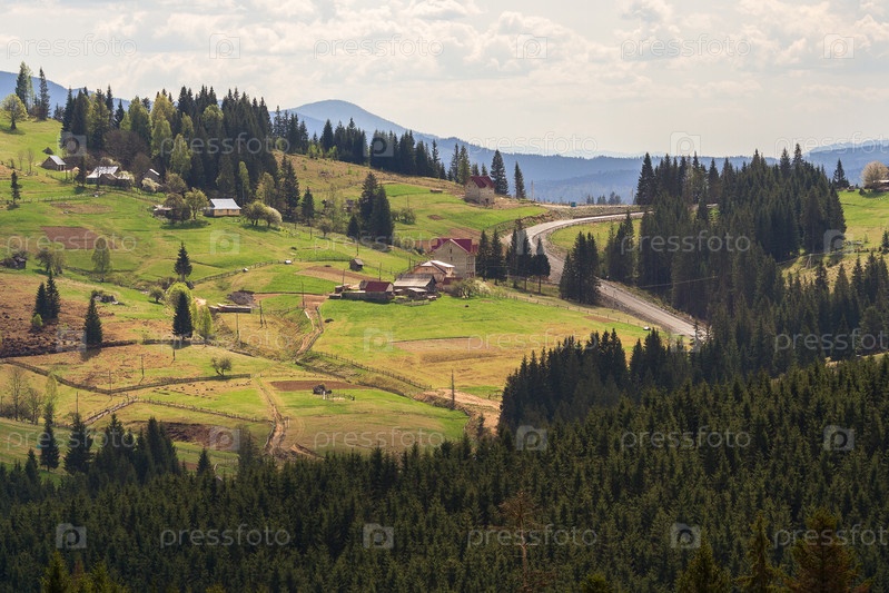 Дорога через зеленые холмы и горы