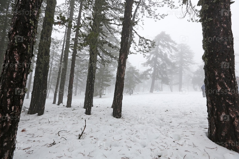 Туманный зимний день в горах Троодос на Кипре