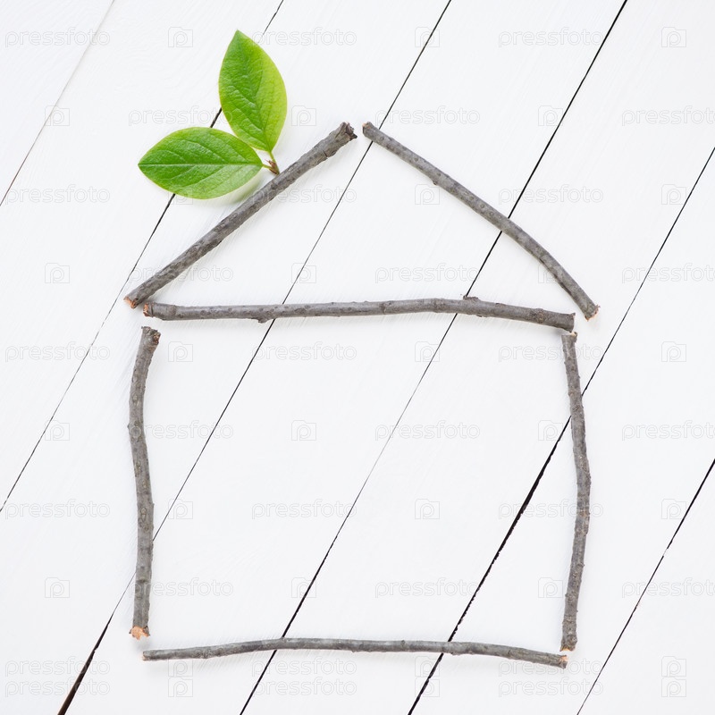 Экологический дом, состоящий из веток и зеленых листьев