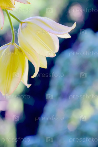 Желтый тюльпан на зеленом фоне