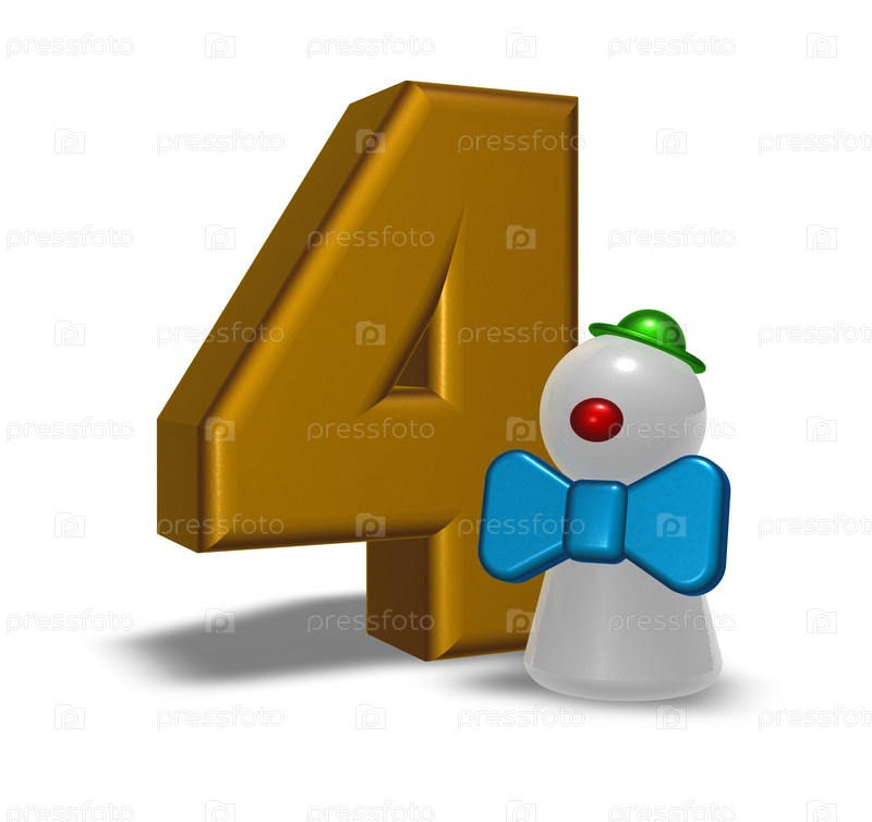 Число 4 и клоун - 3D иллюстрация