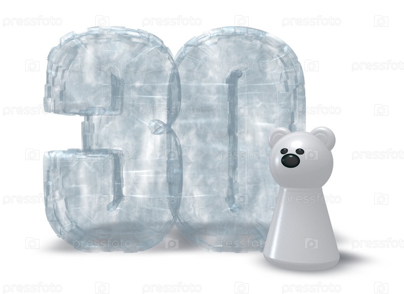 Замороженный номер тридцать и белый медведь - 3d иллюстрация