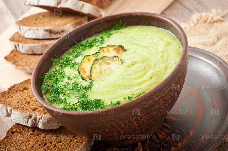 Крем-суп с цуккини в керамической миске