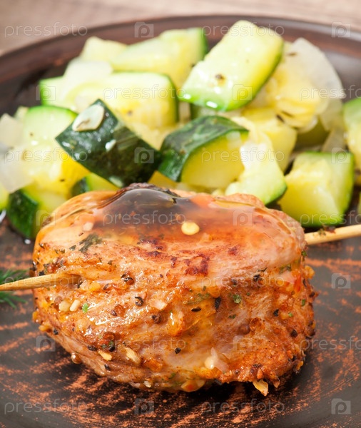 Мясные рулетики с гарниром из тушеных кабачков