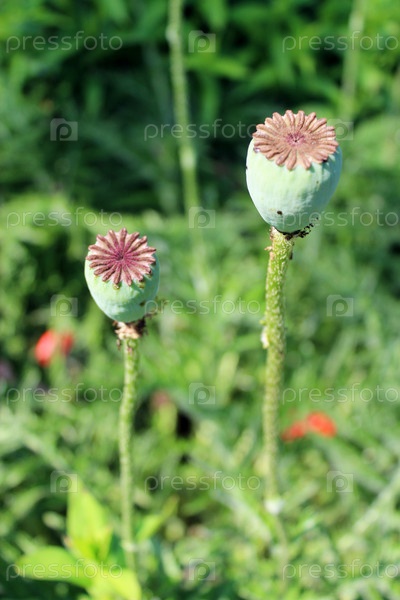 Красивые головки мака в поле