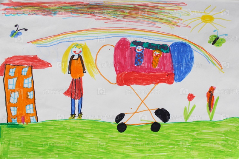 Детский рисунок матери с коляской
