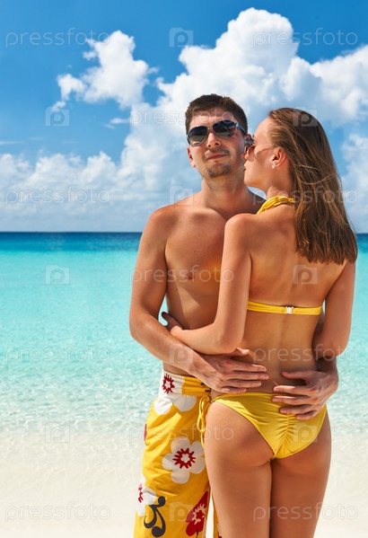Пара на пляже на Мальдивах