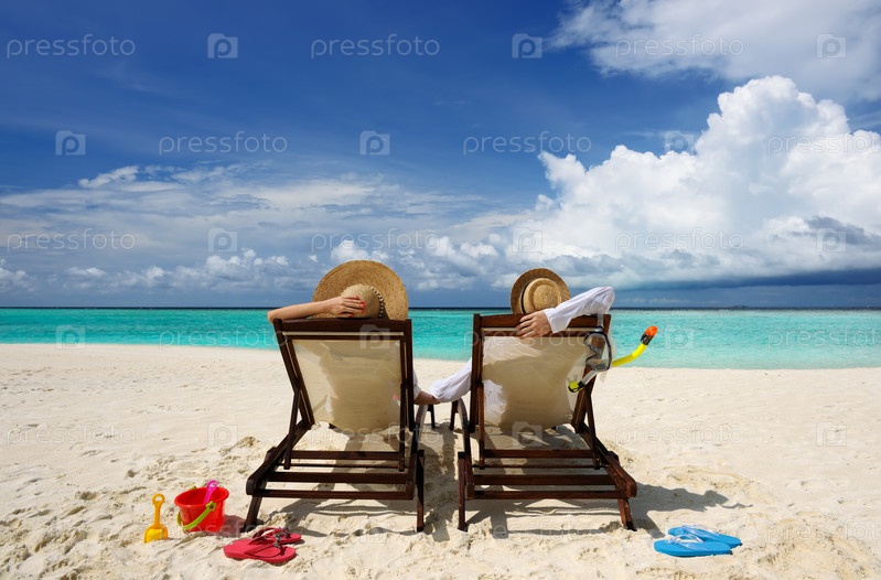Пара на пляже на Мальдивах