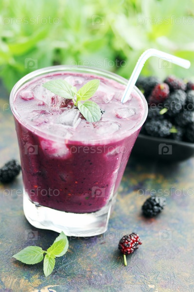 Коктейль из йогурта с шелковицей и мятой