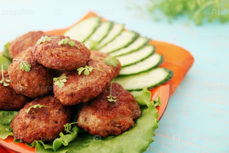 Жареные котлеты с салатом из огурцов и кресс-салатом