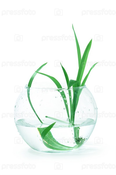 Комнатное растение с длинными зелеными листьями внутри стеклянного шара