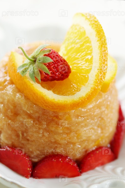 Летний десерт с яблоком, апельсином и клубникой
