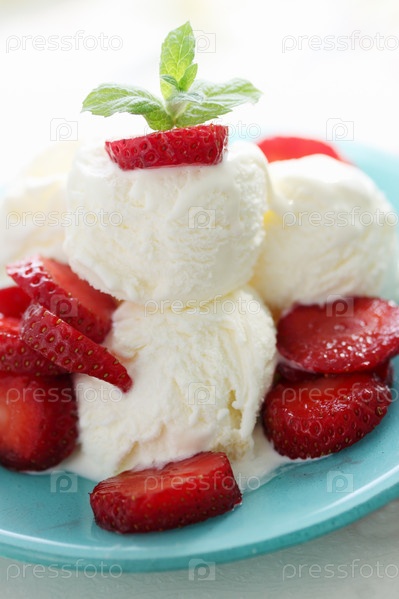 Ванильное мороженое с клубникой и мятой