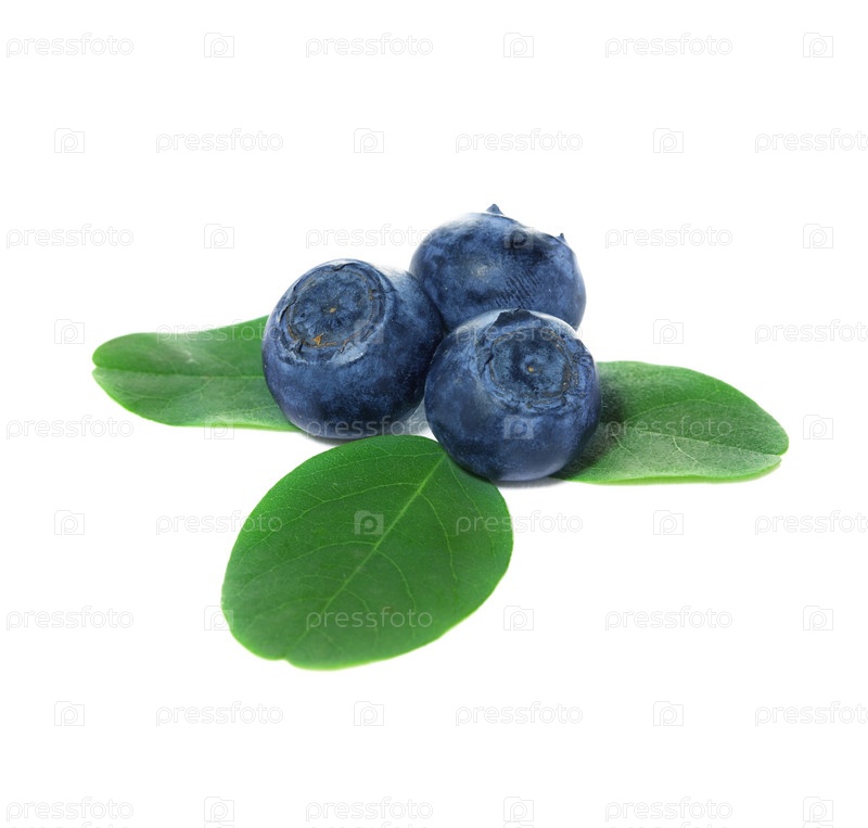 Черника с листьями на белом фоне
