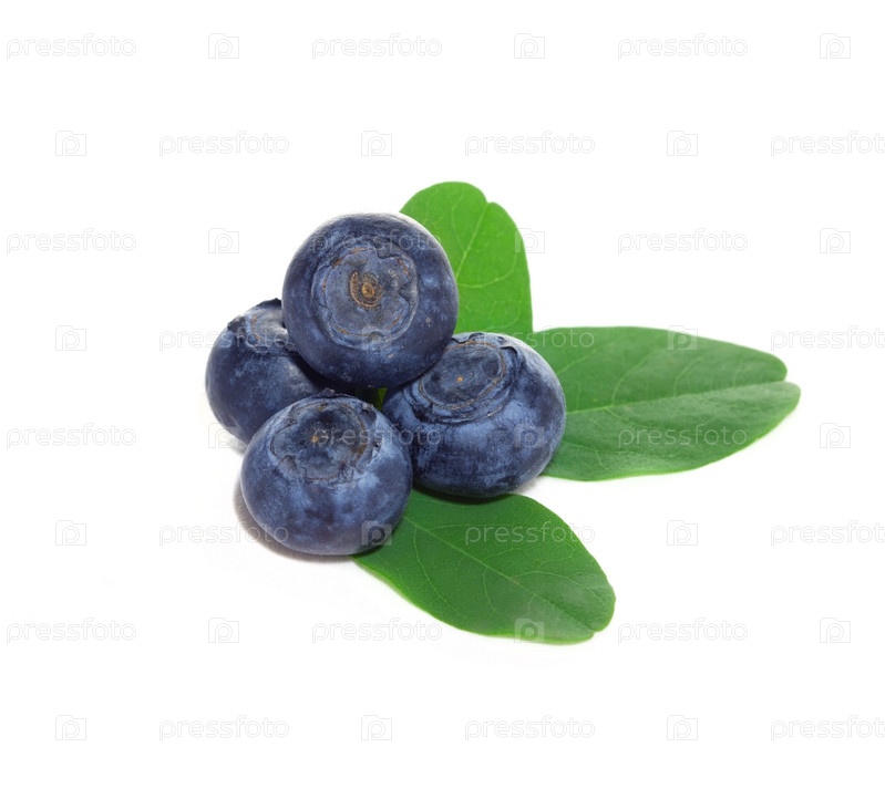 Черника с листьями на белом фоне