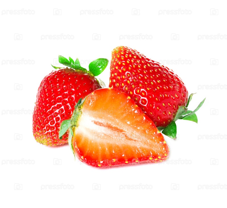 Клубника с листьями, изолированная на белом фоне