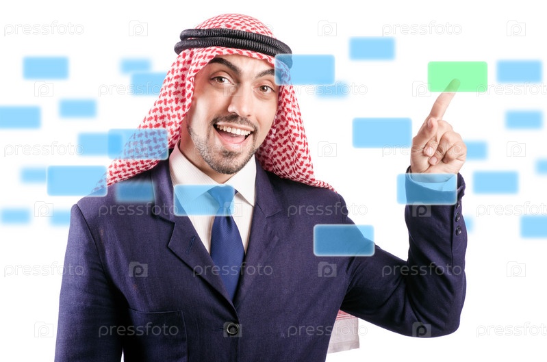 Араб нажимает на виртуальную кнопку