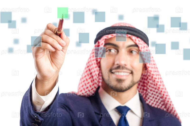 Араб нажимает на виртуальную кнопку
