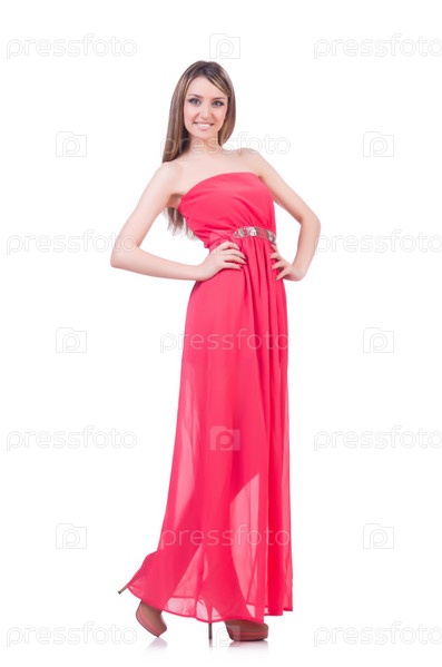 Женщина в модной одежде на белом фоне
