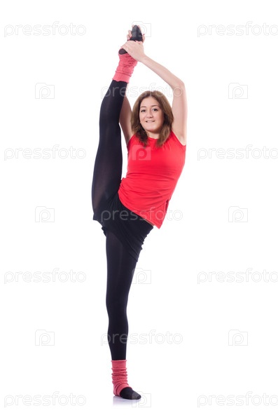 Молодая гимнастка на белом фоне