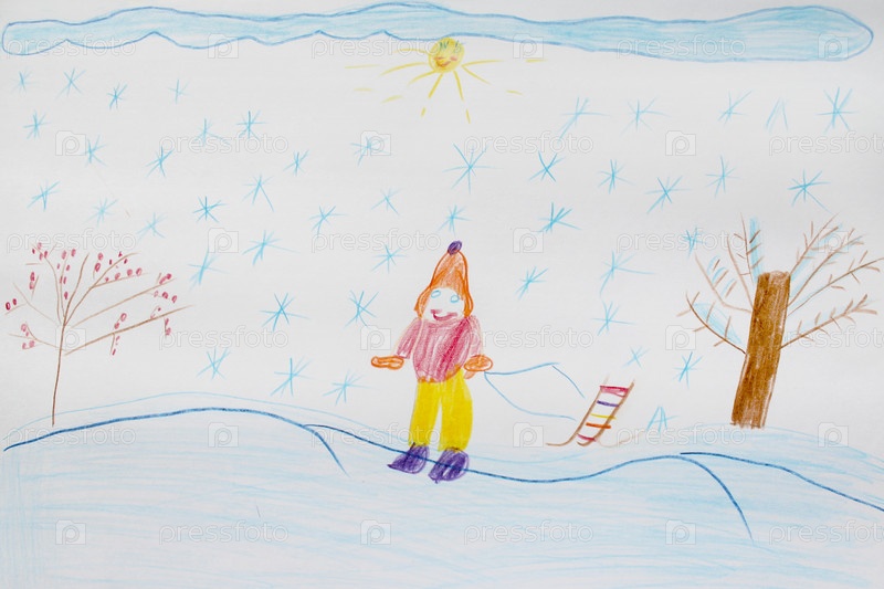 Детский рисунок лыжника