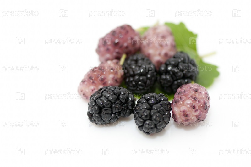 Черная и розовая шелковица на белом фоне