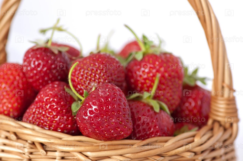 Клубника в плетеной корзинке крупным планом