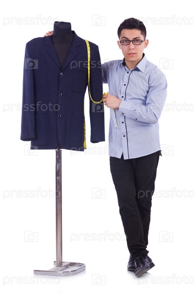 Смешной портной на белом фоне