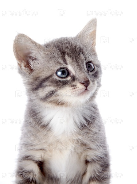 Серый полосатый котенок с голубыми глазами