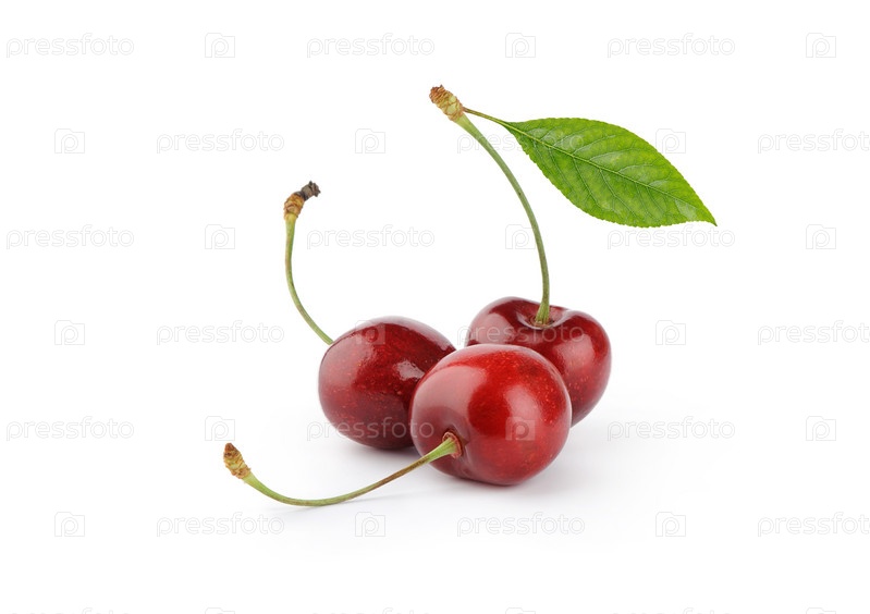 Спелые вишни ягоды с зелеными листьями