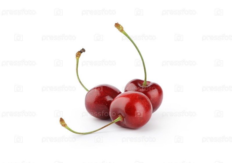 Спелые вишни ягоды с зелеными листьями