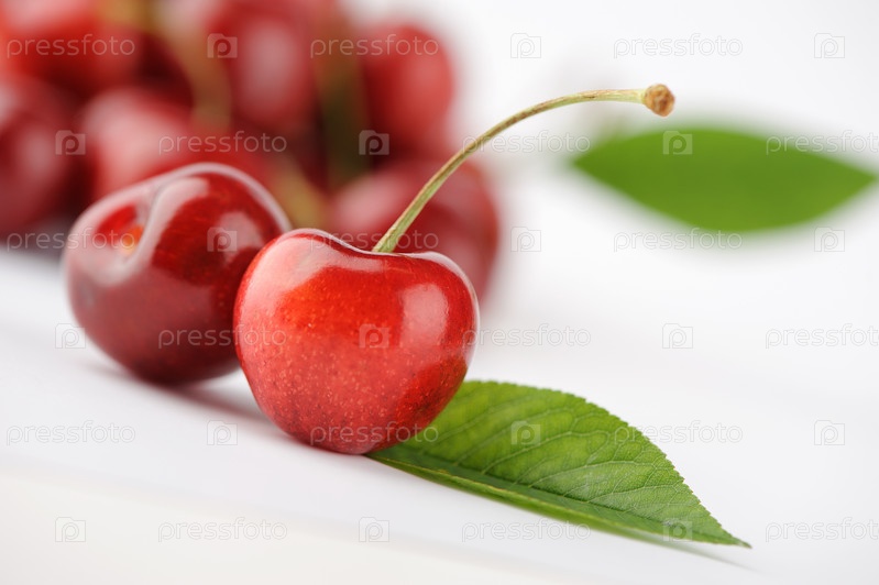 Черешни с листьями