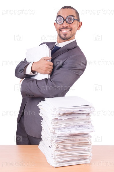 Занятой бизнесмен с большим количеством документов