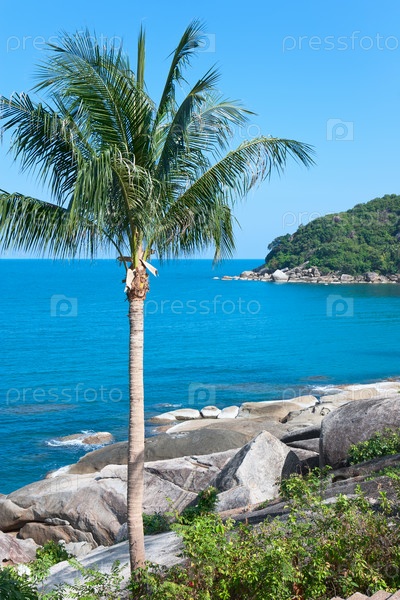 Кокосовая пальма на каменистом побережье