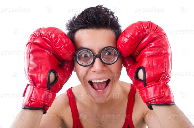 Смешной боксер на белом фоне