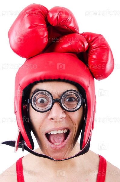 Смешной боксер на белом фоне
