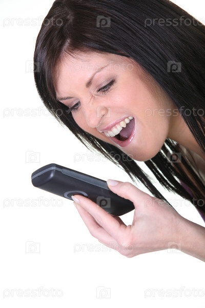 Молодая женщина кричит на свой мобильный телефон